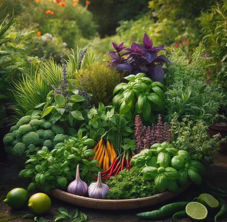- Basilic vietnamien : Goût légèrement épicé, ajoute une note piquante.